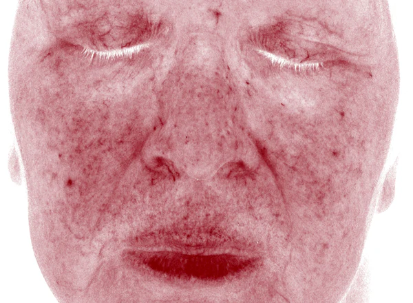 VISIA® skin analysis imaging system- standard view and subsurface red channel view. Individual results may vary.