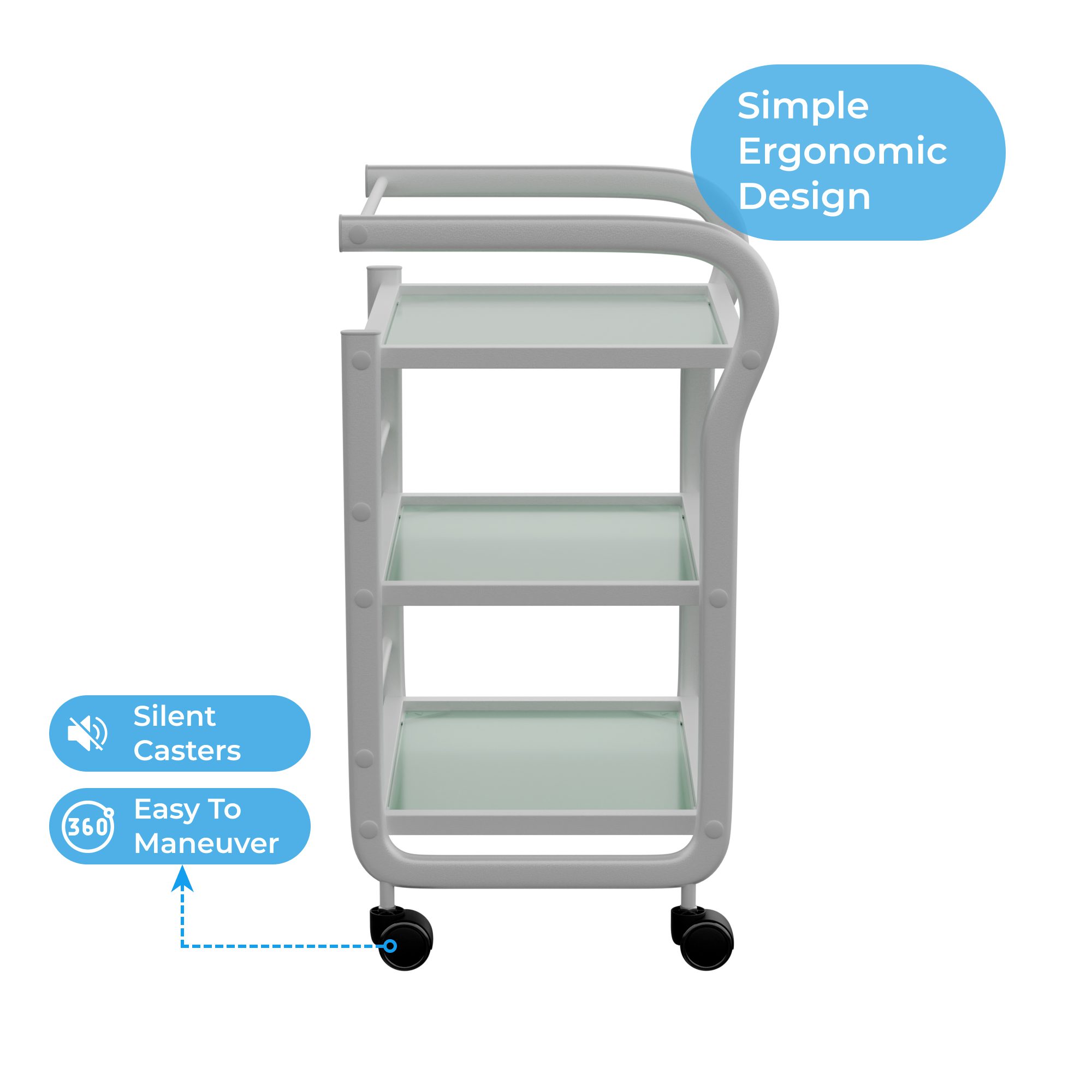 Spa Numa ARCUS Beauty Trolley – White Metallic Design with 3 Tempered Glass Shelves | Salon Organizer Cart for Beauty Products, Tools, and Equipment | Mobile Rolling Storage with Rails – USA-1013