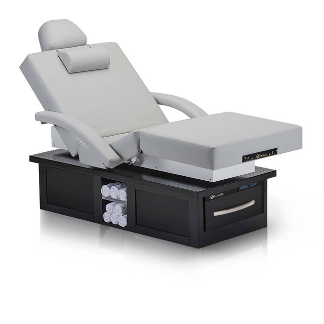 Intuitive Adjustments and Ambient Lighting: Height adjustments are made effortless with a foot remote, controlling the smooth, quiet motor — no more jarring noises disrupting the serene spa environment. Additionally, LED lighting, controllable via a tucked-away remote, adds an ambiance that can be tailored to your treatment mood, further enhancing the therapeutic experience.