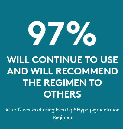 Even Up® Clinical Pigment Perfector® SPF 50 is powered by LUMIRA® Skin Brightening Complex, a proprietary formula that is clinically tested to address the multi-phase pigmentation process that leads to the appearance of skin discoloration.