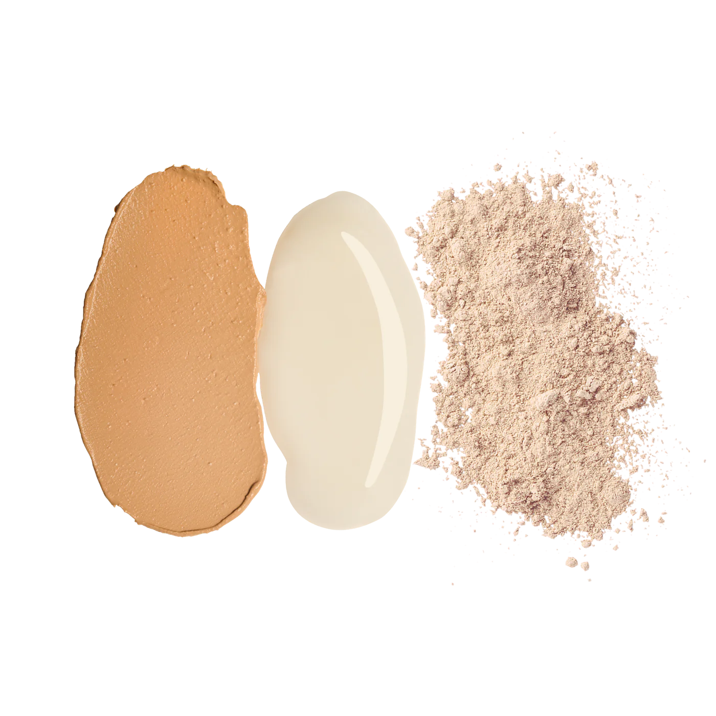 Mica, Dimethicone/Vinyl Dimethicone Crosspolymer, Dimethiconol/Propylsilsequioxane/Silicate Crosspolymer, Lycopodium Clavatum Extract, Sodium Hyaluronate, Imperata Cyclindrica Root Extract, Glycerin, Water, Caesalpinia Spinosa Fruit Pod Extract, Vitis Vinifera (Grape) Seed Extract, Camellia Sinensis Leaf Extract, Quercus Robur (Oak) Wood Extract, Helianthus Annuus (Sunflower) Sprout Extract, Maltodextrin, Methicone, Triethoxycaprylylsilane, Laureth-4, Sodium Benzoate, Potassium Sorbate, Chromium Oxide Greens (CI 77288), Iron Oxides (CI77491, CI 77492, CI 77499).