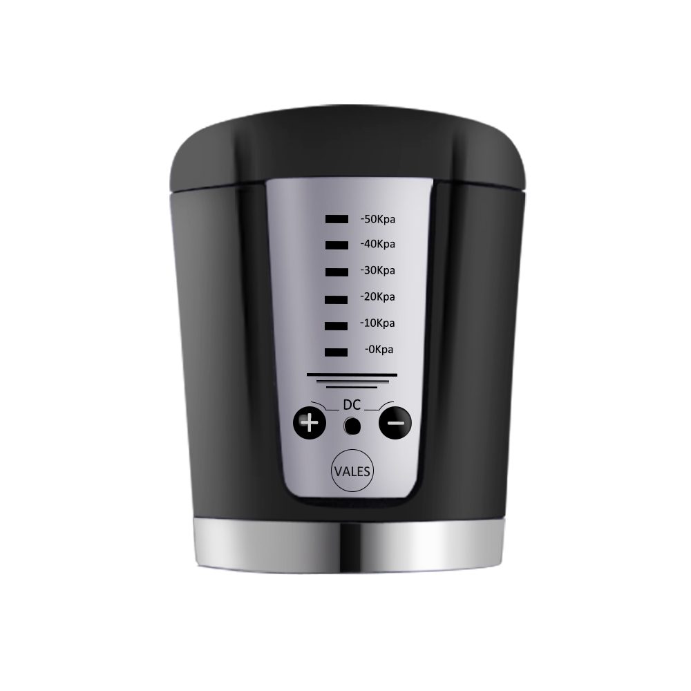 - Multiple vacuum pump settings and a quick release button. This vacuum device comes with 5 different controlled pressure settings for easy penis pumping. Users can easily adjust to their desired vacuum level by pressing the ‘+’ or ‘-’ button. Once they’ve reached their intended pressure, there’s also a quick release button.