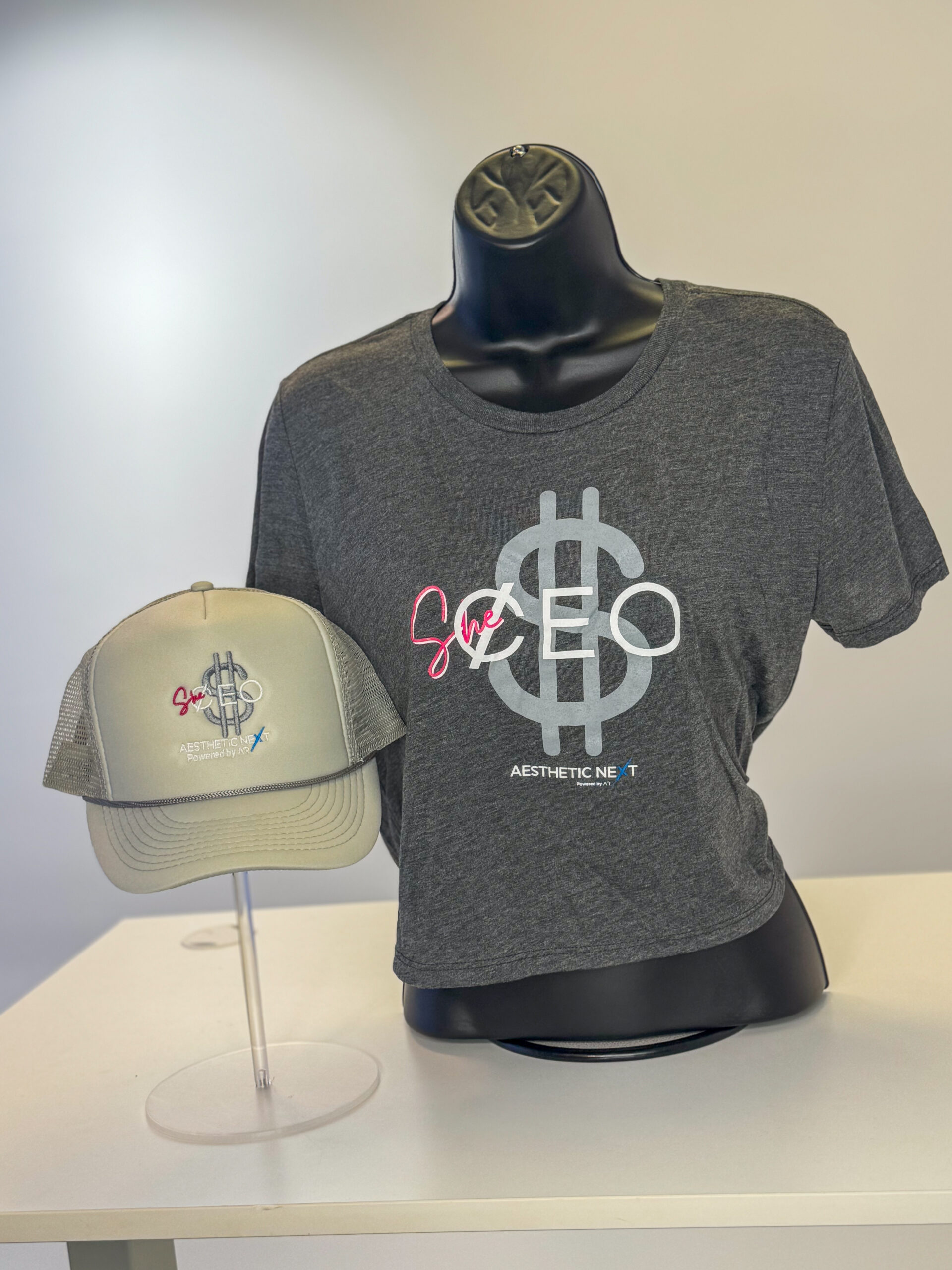 Don’t forget to pick up the matching “She”EO trucker hat and pin!