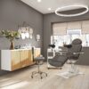 In addition, there’s a reset button on the back that brings the chair to a seated position without having to hold down any buttons. So, when the doctor, nurse or esthetician is working, they don’t need to fumble around with a remote control.
